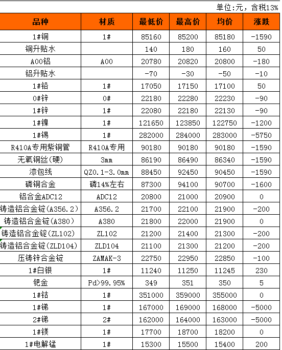 长江有色金属现货10月13日行情