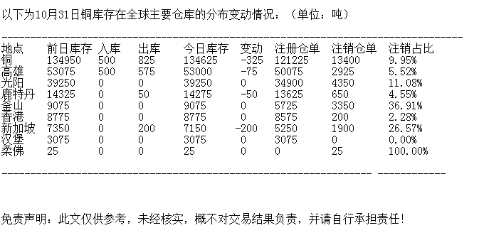 LME 10月31日铜库存分布情况