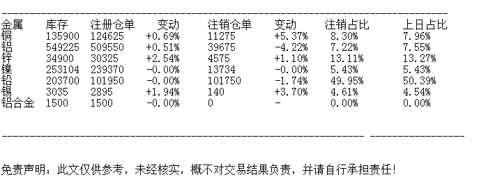 LME 11月7日基金属仓单数据