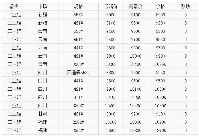 今日工业硅现货市场价格报价维稳运行,市场询单为主,但实际成交有限,下游需求仍然处于弱势,以刚需采购为主。