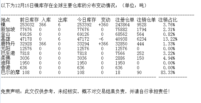 LME 12月15日镍库存分布情况