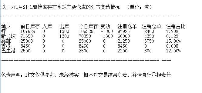 LME 1月2日锌库存分布情况