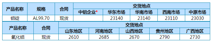 中铝股份公司主要产品2月6日现货报价