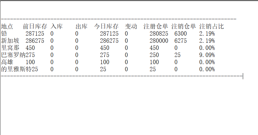 LME 2月19日铅库存分布情况