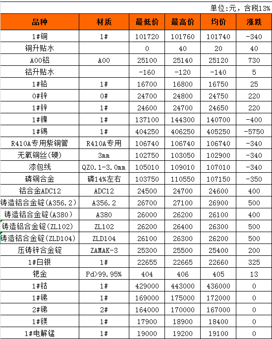 长江有色金属现货3月5日行情