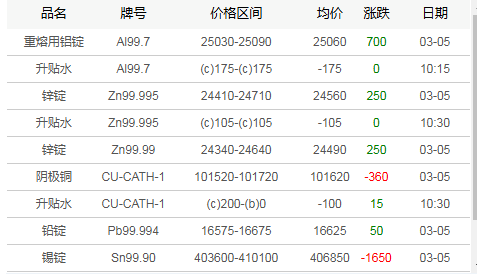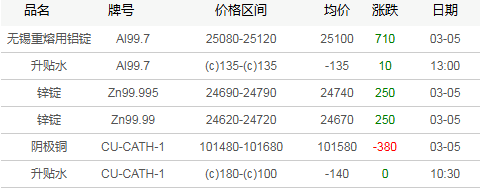 广东地区有色现货市场3月5日行情