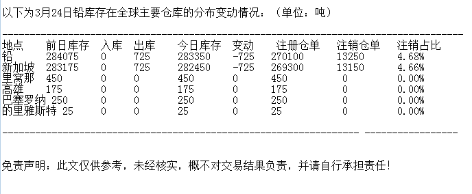 LME 3月24日铅库存分布情况