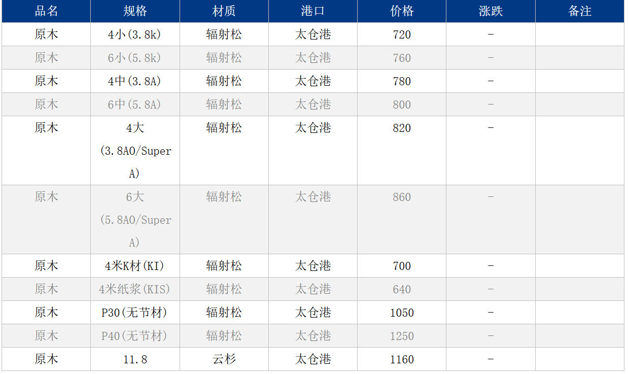 10月27日太仓港原木现货价格持稳