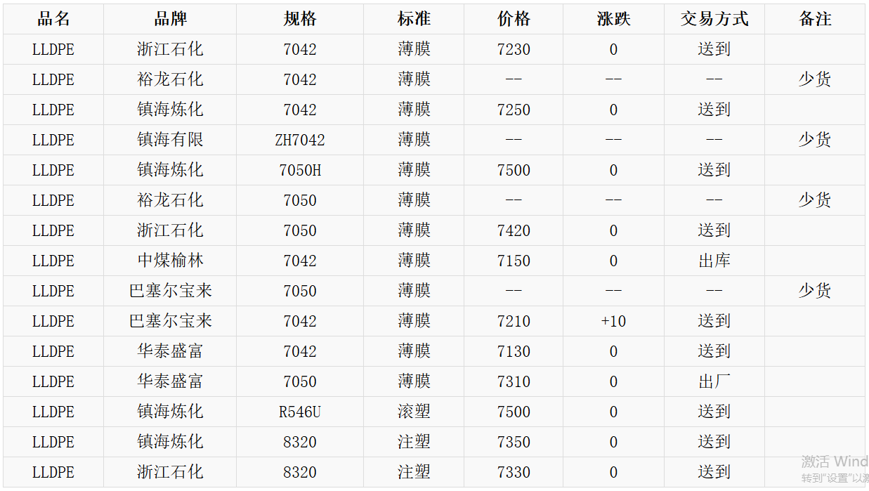 余姚市场LLDPE价格多稳定,月末商家维持积极出货态度,预售价格较低,现货价格波幅较小。