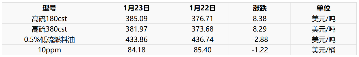 1月23日新加坡燃料油现货市场价格调整