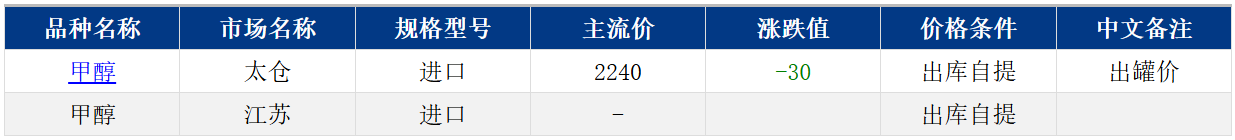 期货下跌,江苏太仓甲醇市场基差略走强。早间太仓现货商谈2235-2245元/吨,基差报盘-45元/吨附近;2下商谈基差至截稿前已走强至-13~-15元/吨,3下已走强至+5~+10元/吨。