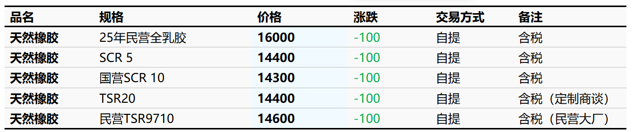 2月2日云南市场天然橡胶价格下调