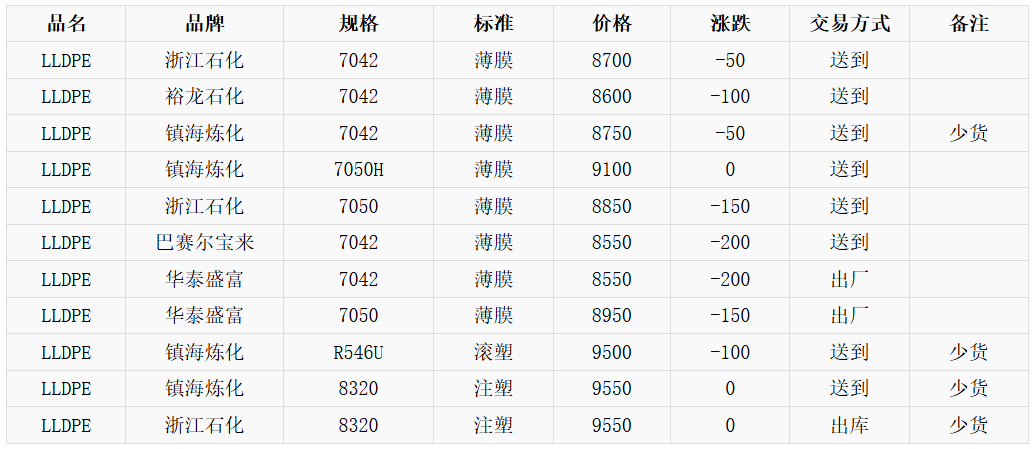 3月20日余姚市场LLDPE国产料价格下跌