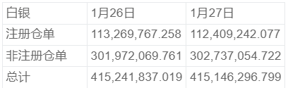 COMEX1月27日白银库存统计