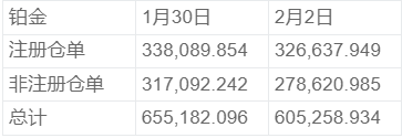 NYMEX2月2日铂金库存统计
