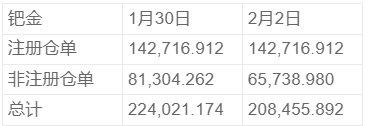 NYMEX2月2日钯金库存统计