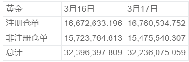 COMEX 3月17日黄金库存统计