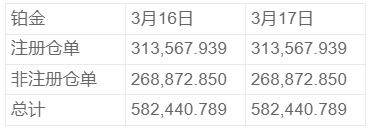NYMEX 3月17日铂金库存统计