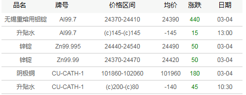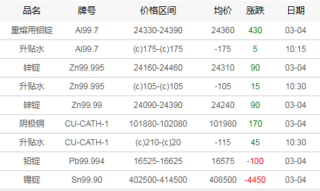 广东地区有色现货市场3月4日行情
