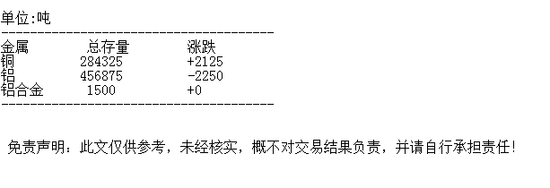 LME 3月6日铜铝库存统计