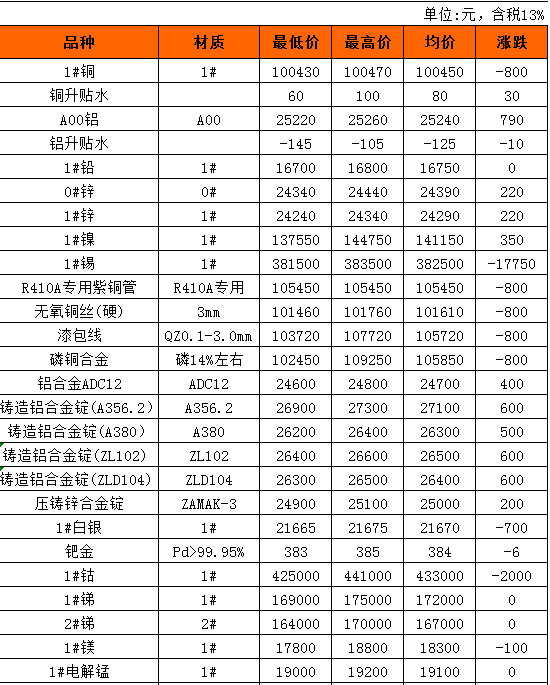 长江有色金属现货3月9日行情